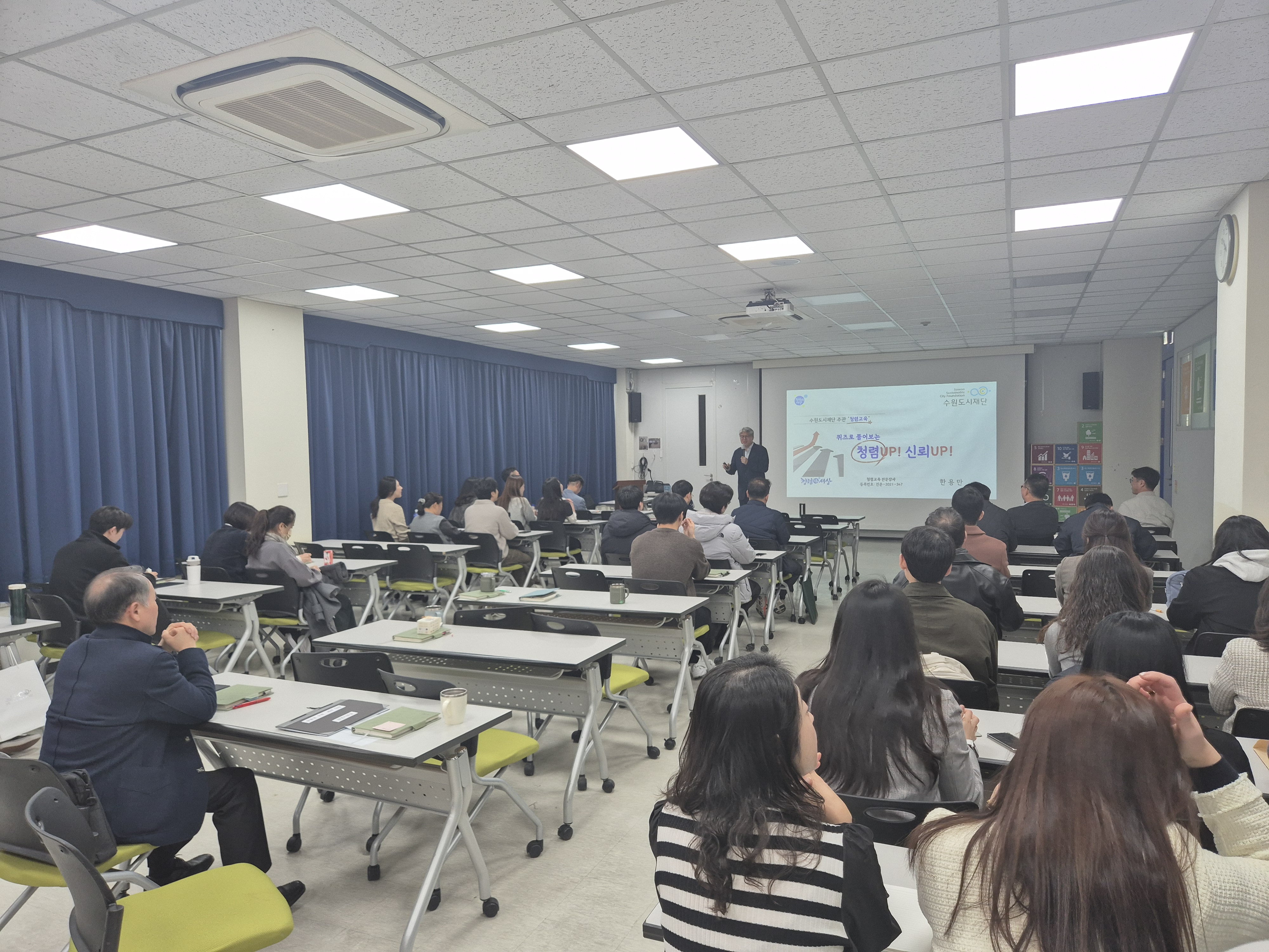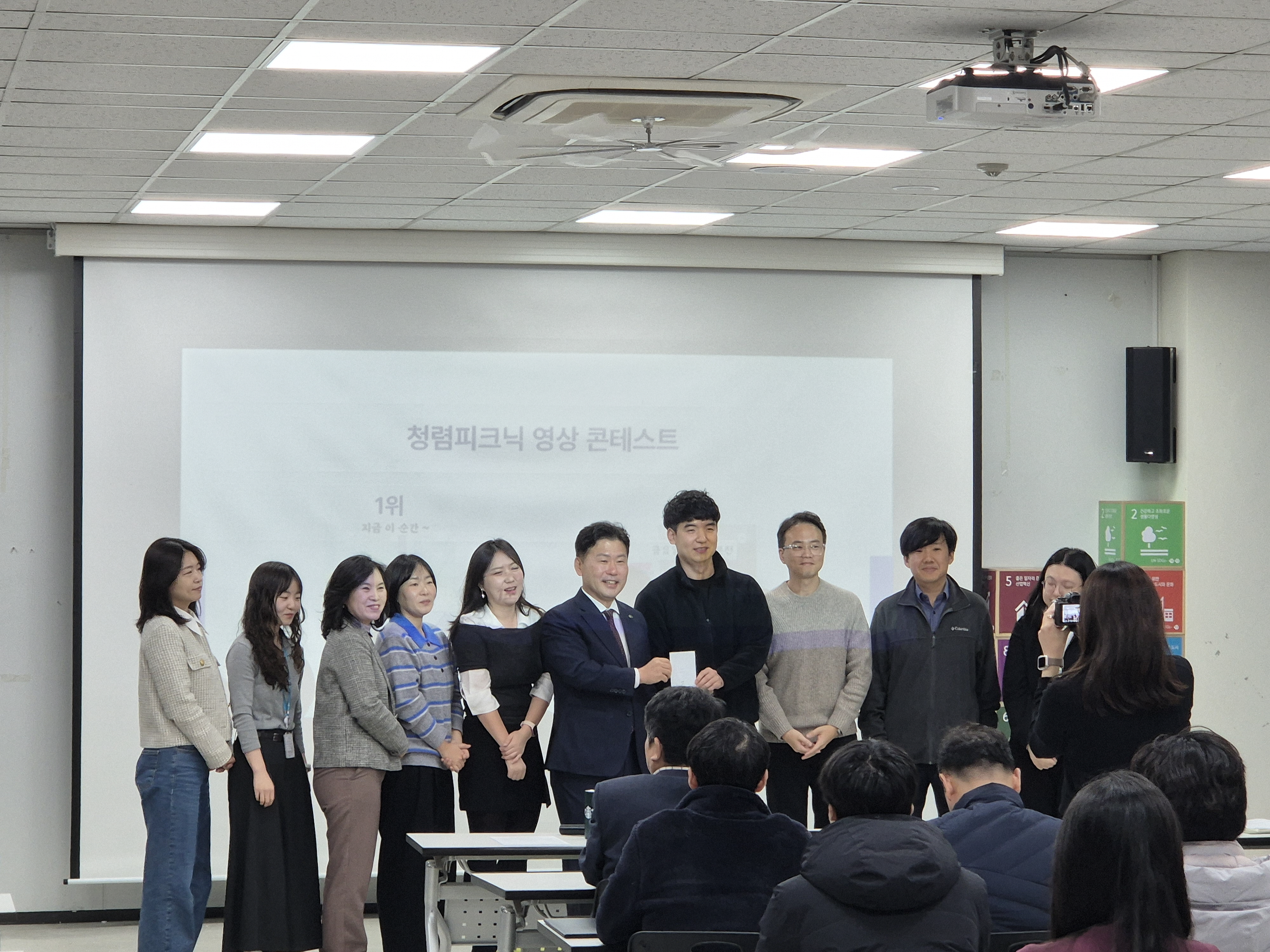 25. 11.4.(화) 11월 수원도시재단 월례조회를 진행하였습니다. 월례조회에서는 이사장님의 인사말씀을 시작으로 11월 생일자 축하와 청렴피크닉 영상평가 시상식이 진행되었습니다. 이어 김성진 수원시정연구원장님께서 ‘2040 글로벌 수원 미래구상’을 주제로 특강을 진행하셨으며, 한용만 강사님의 반부패·청렴교육이 이어져 청렴한 조직문화의 중요성을 되새기는 뜻깊은 시간이었습니다.