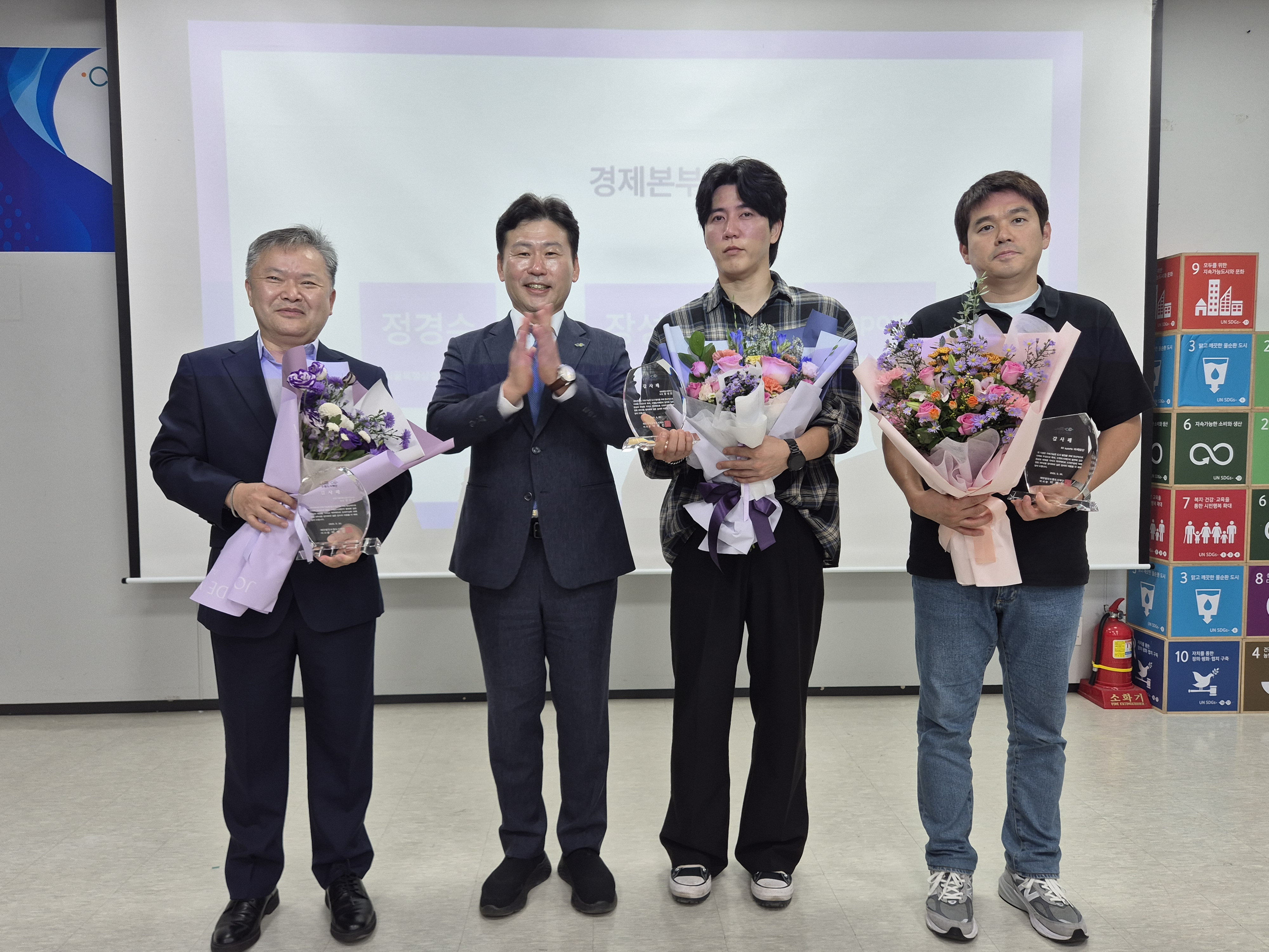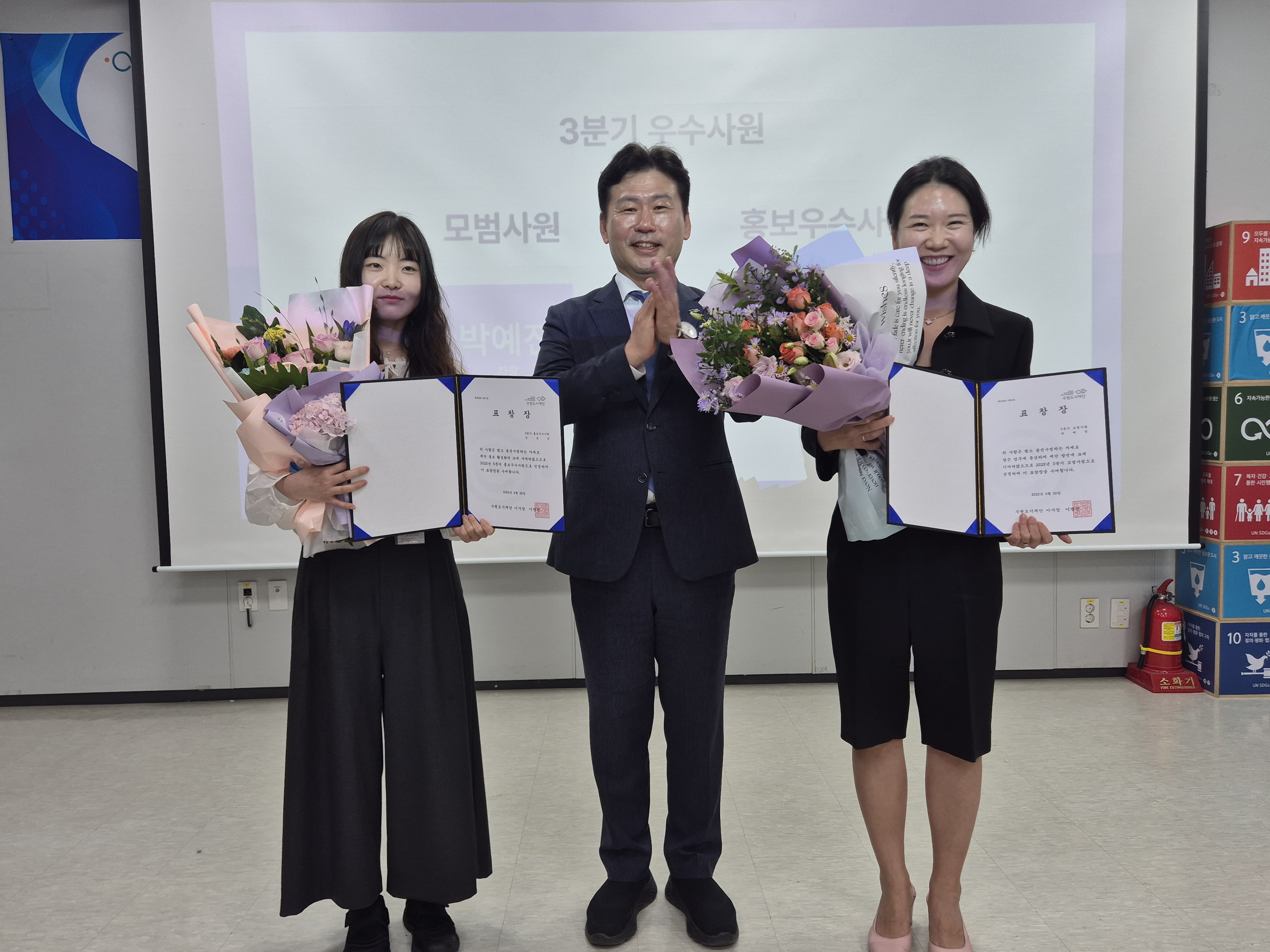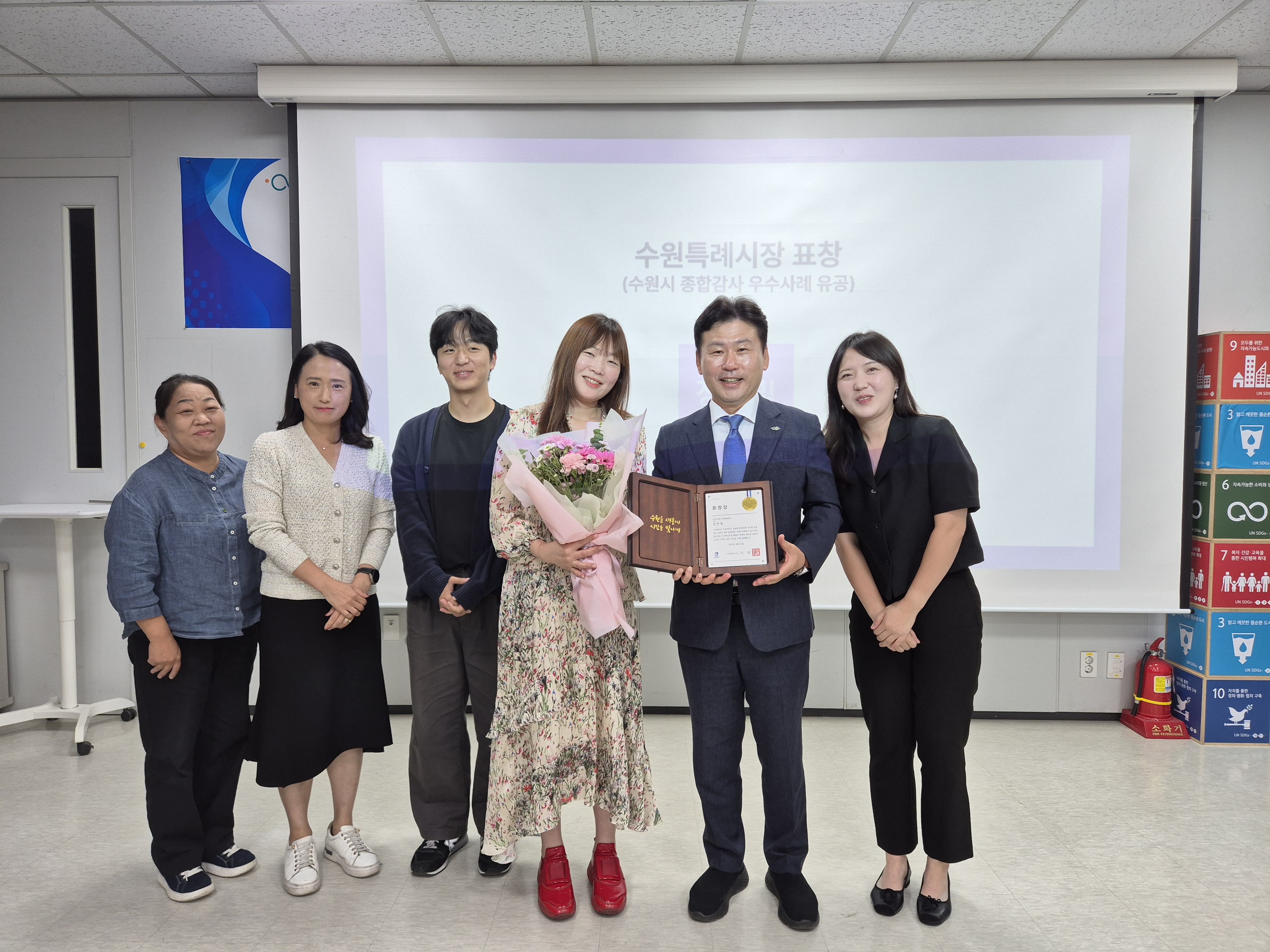 2025.09.30.(화) 우리 수원도시재단은 창립 9주년을 기념해 월례회를 진행하였습니다. 이번 월례회에서는 재단의 성과를 되돌아보며, 외부 포상으로 수원특례시장 표창이 수여되었습니다. 내부 포상으로는 창립기념 포상, 3분기 모범사원 표창, 홍보우수사원 표창이 전달되었고, 10월 생일자에 대한 축하도 있었습니다. 이번 월례회는 재단의 발전을 함께 이끌어온 직원들의 노력에 감사하고, 앞으로의 비전을 나누는 뜻깊은 시간이었습니다