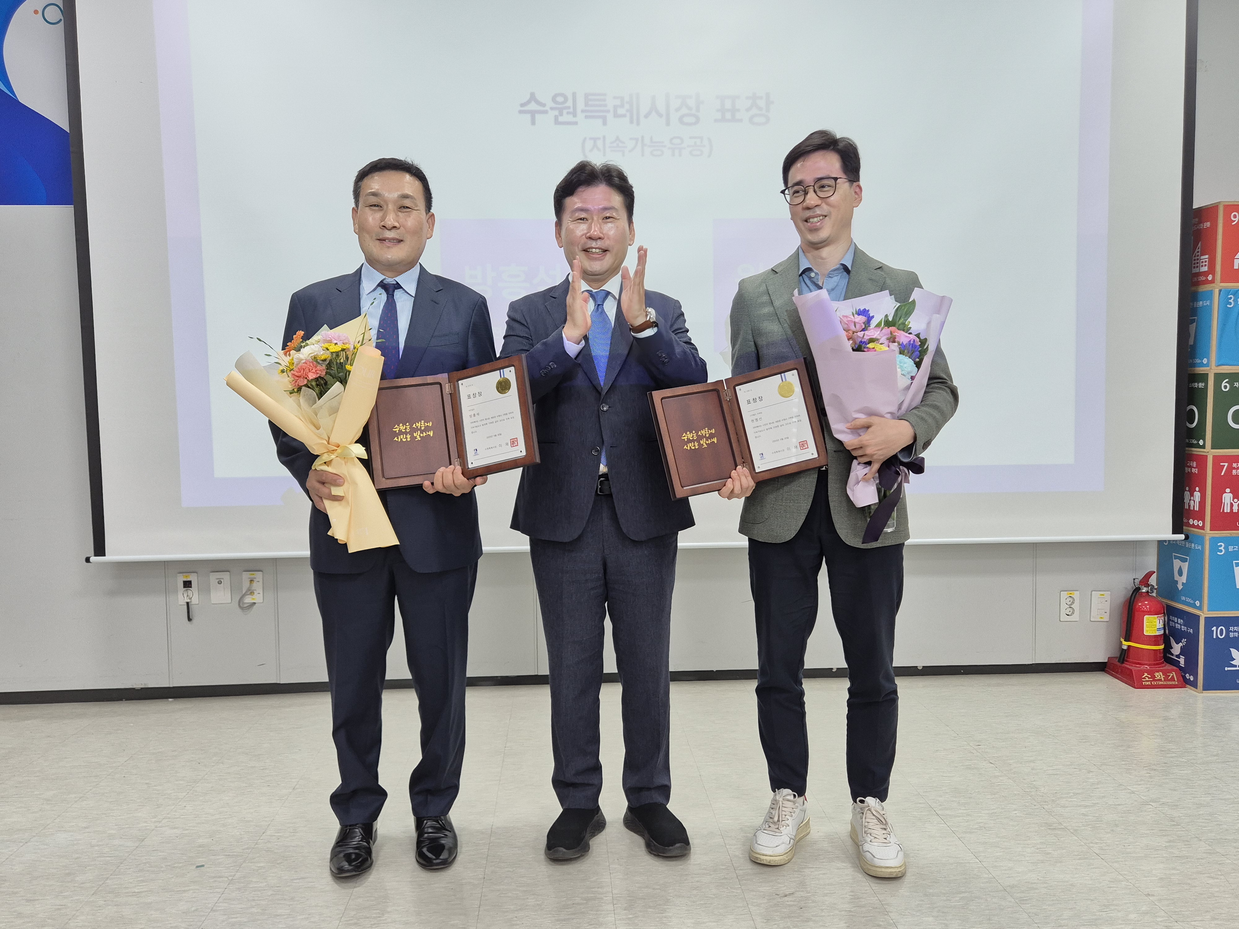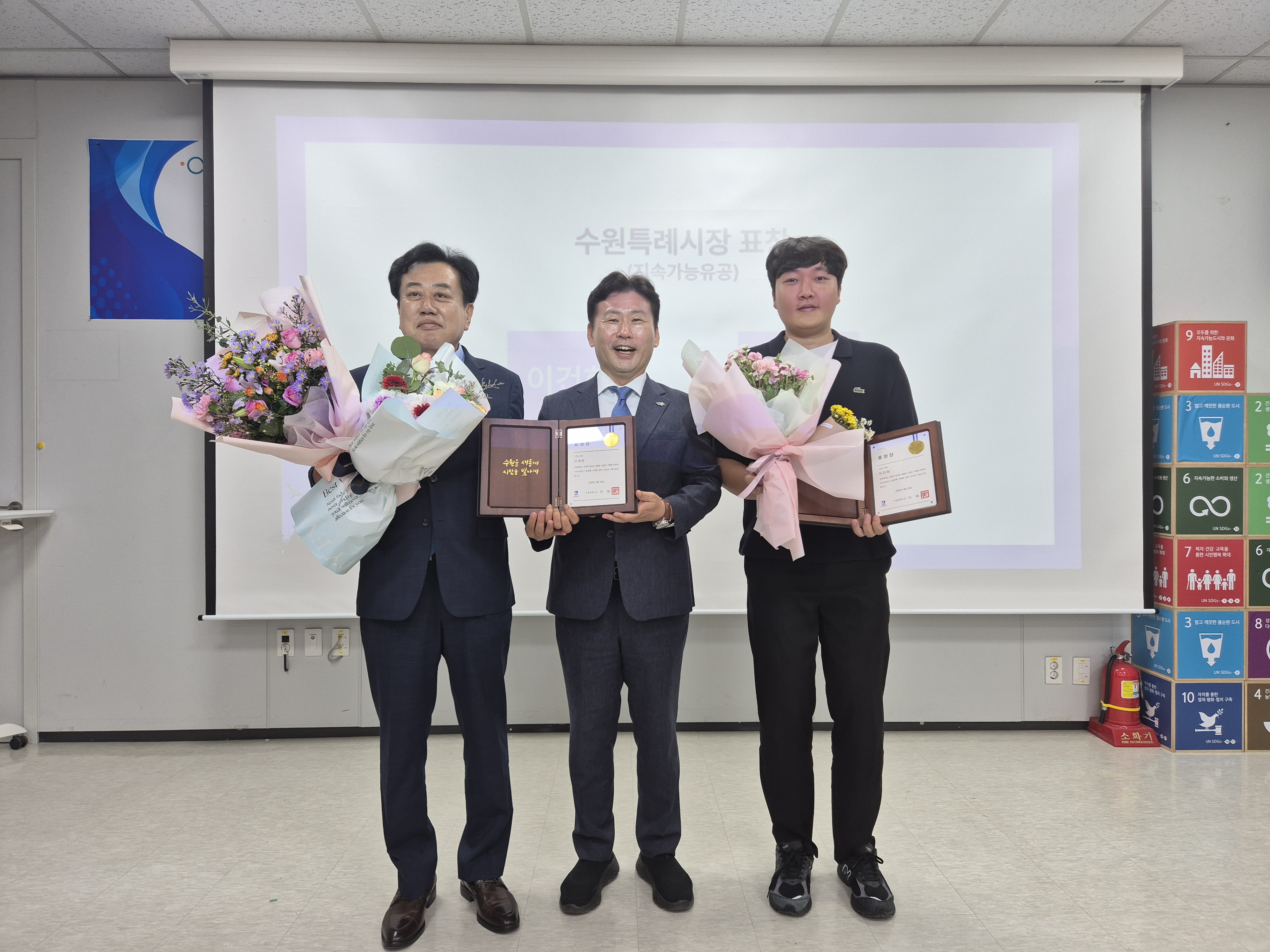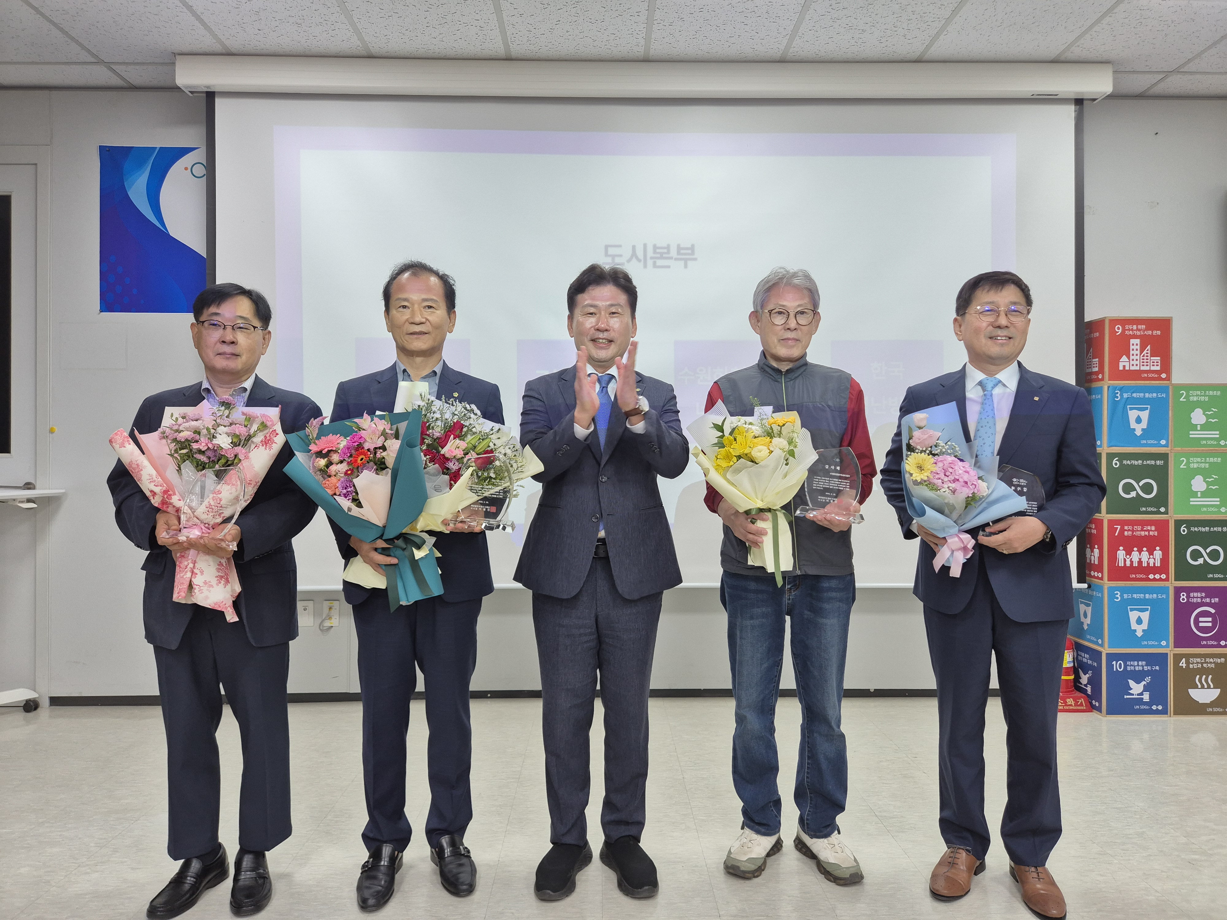 2025.09.30.(화) 우리 수원도시재단은 창립 9주년을 기념해 월례회를 진행하였습니다. 이번 월례회에서는 재단의 성과를 되돌아보며, 외부 포상으로 수원특례시장 표창이 수여되었습니다. 내부 포상으로는 창립기념 포상, 3분기 모범사원 표창, 홍보우수사원 표창이 전달되었고, 10월 생일자에 대한 축하도 있었습니다. 이번 월례회는 재단의 발전을 함께 이끌어온 직원들의 노력에 감사하고, 앞으로의 비전을 나누는 뜻깊은 시간이었습니다