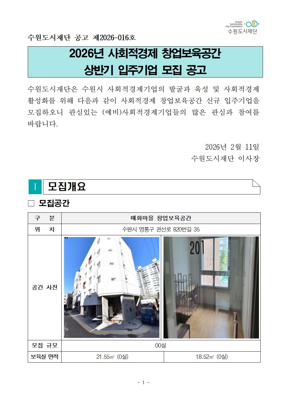 [공고 제2026-016호] 2026년 상반기 사회적경제 창업보육공간 입주기업 모집 공고