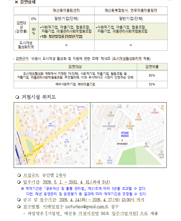 [공고 제2026-045호] 2026년 도시재생 거점시설 입주기업 모집(2차) 공고