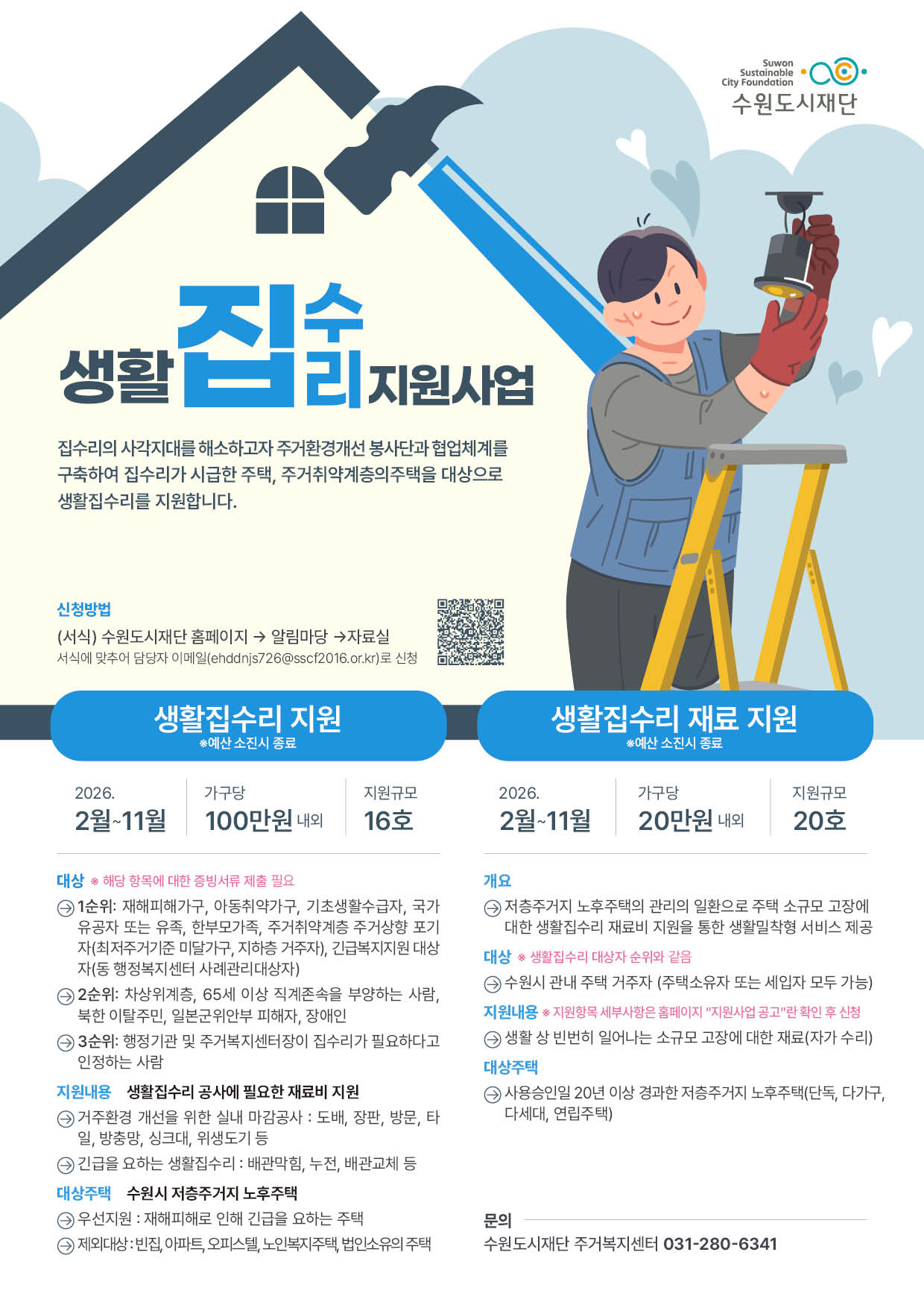 - 지원내용 : 생활 상 빈번히 일어나는 소규모 고장에 대한 재료(자가 수리)지원